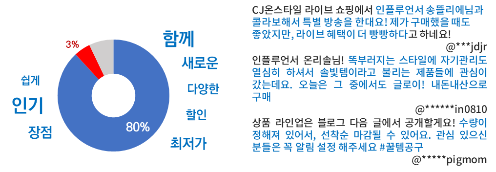 인플루언서 공동구매 관련 긍부정률, VOC 분석